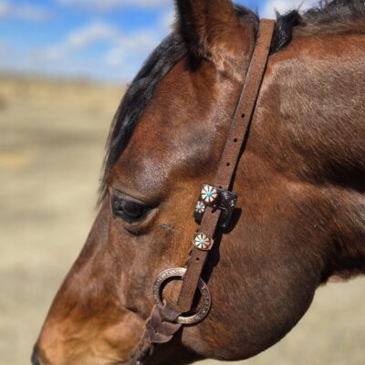 A: A one ear headstall replaces the browband with a single ear slot for a streamlined, secure fit. It’s lighter, cleaner, and preferred by many western riders for roping, reining, and show events.