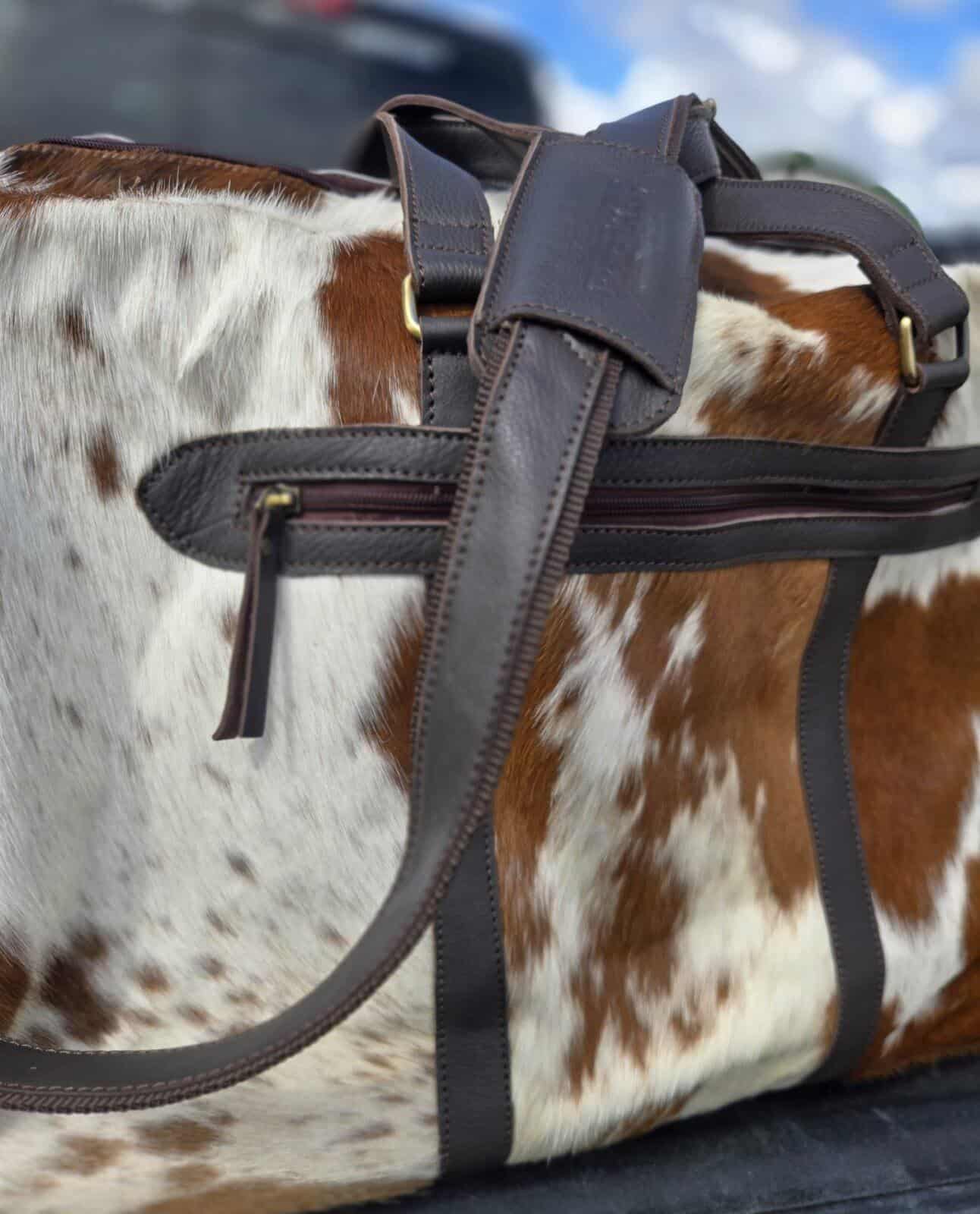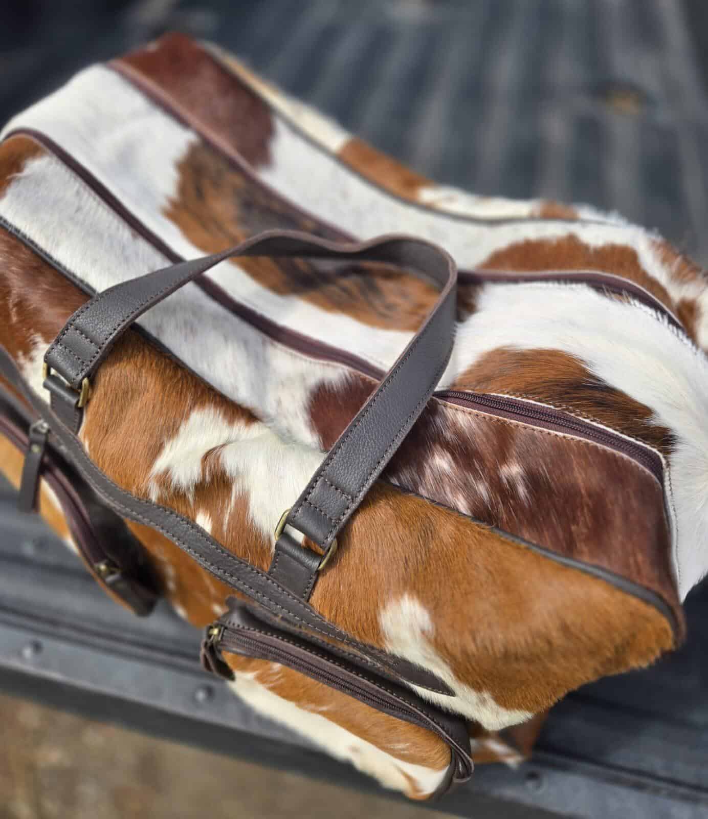 The Hair On Cowhide Duffel Bag is made with a soft and supple leather, unique cowhide and canvas lining. This is the perfect duffel bag for all of the cowhide addicts out there. With a removable shoulder strap featuring matching hair on cowhide, lot’s of pockets and an easy to access double zipper on the top, gorgeous cowhide pattern and leather- what’s not to love?