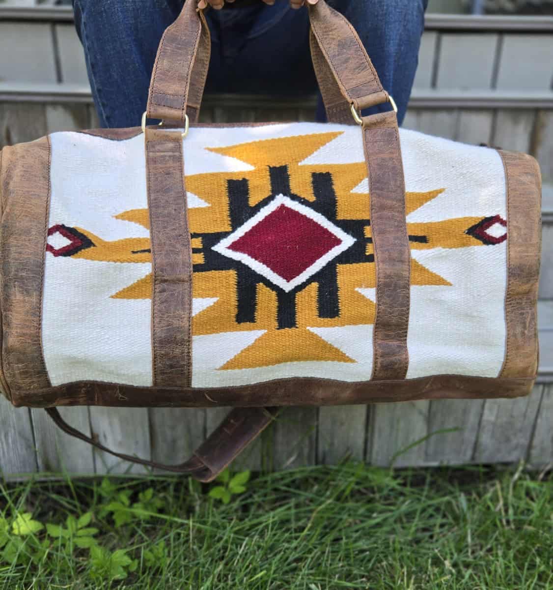 The Sundown Western Duffel Bag is built for the traveler with cowboy grit and southwestern style. Measuring 21″ x 11″ x 11″, it’s the perfect carry-on size for weekend trips, rodeo runs, or throwing in the truck for the next adventure.