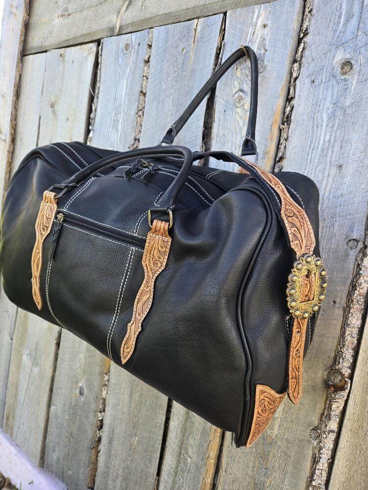 A premium western duffel built from hair-on cowhide, hand-tooled leather, and saddle-blanket panels. What makes it durable, how it carries, and how to care for it.