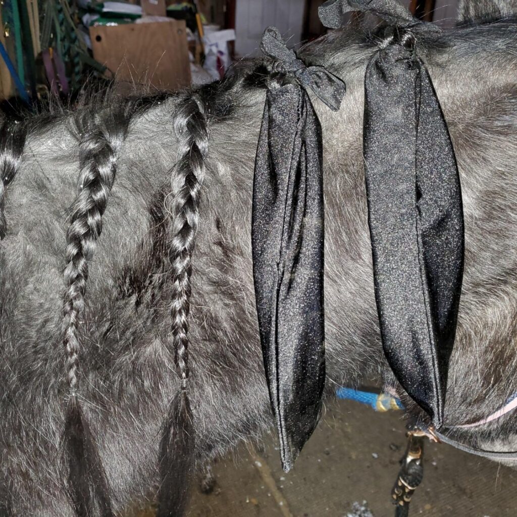- Slip the braid into the mane bag and tie snugly, but not too tight.